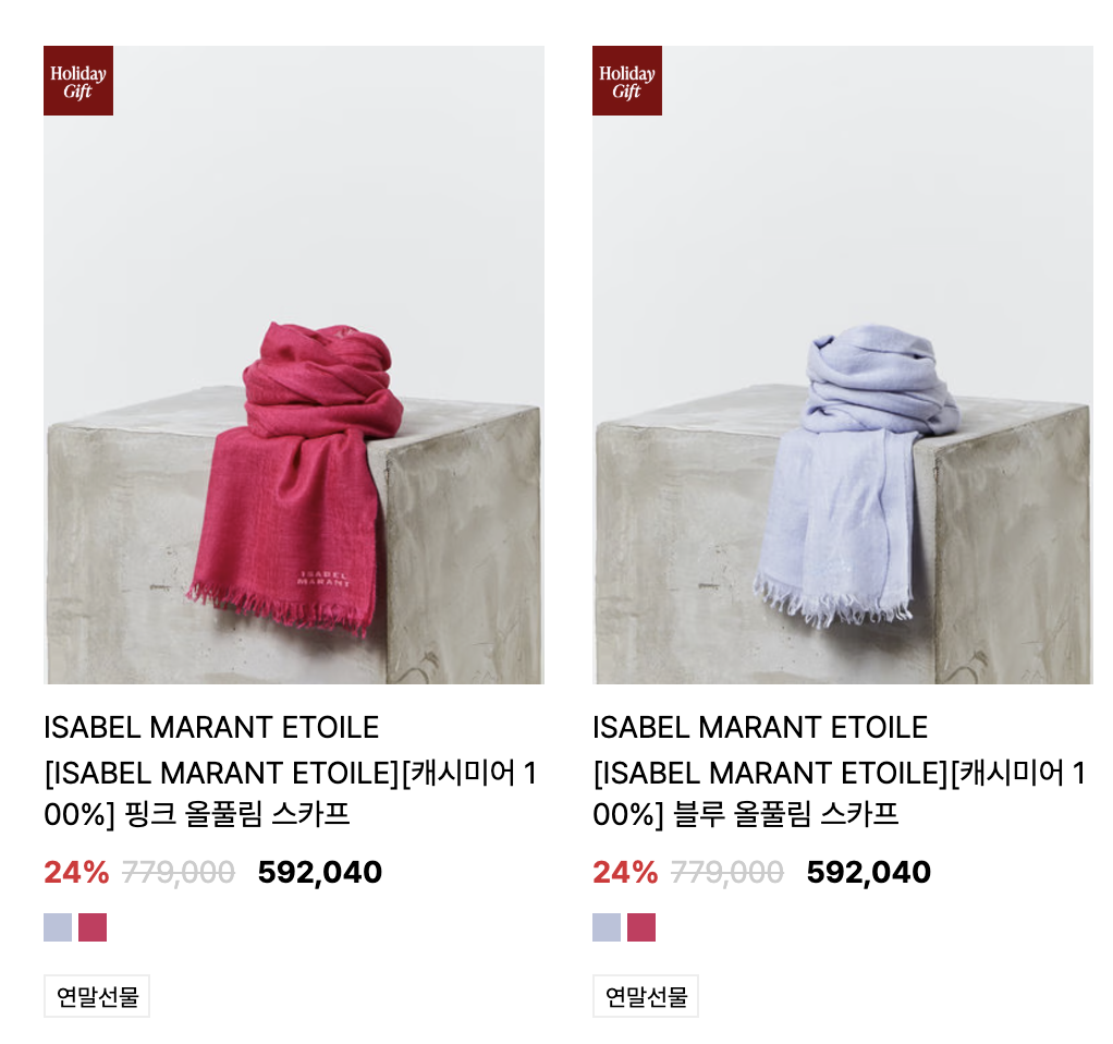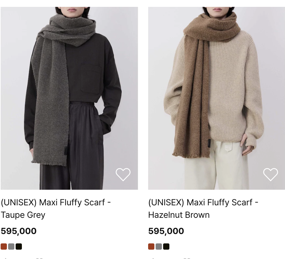 - 목도리는 직접 착용하는 아이템이기 때문에 소재가 중요합니다. 캐시미어나 울 소재는 따뜻하면서도 고급스러운 느낌을 줍니다.
